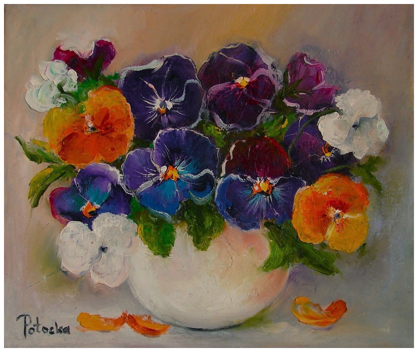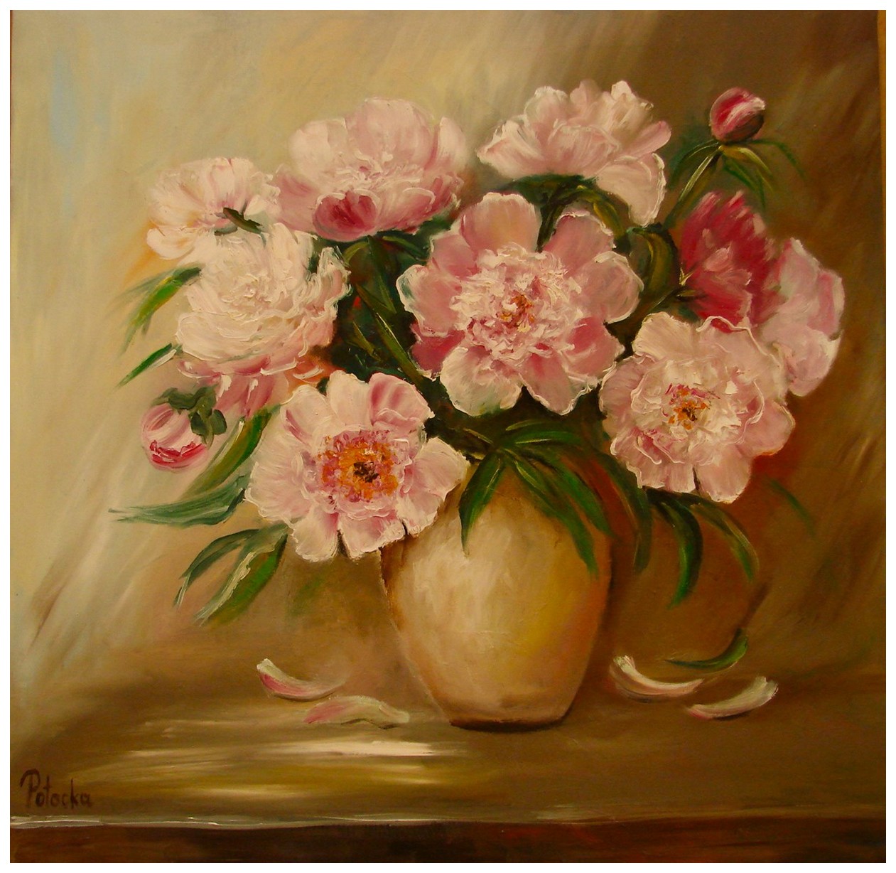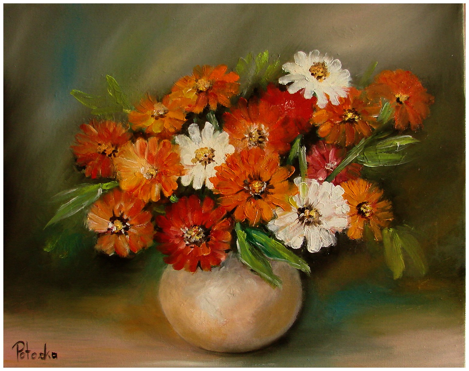 Maluję farbami olejnymi na płótnie, martwe natury, kwiaty oraz polskie pejzaże.
